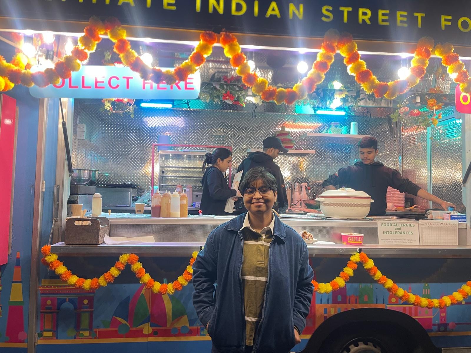 Before leaving, I made sure to try the catering, so I ordered Aloo Mattar, a vegan meal from one of the stalls. It was quite spicy but a delicious take on potato and peas, with my paratha underneath the curry… The aesthetic of the food was unforgivable because I needed the paratha to scoop the curry with my hands and I couldn’t because it became soggy and flaccid, submerged in curry sauce, way to go chef.
